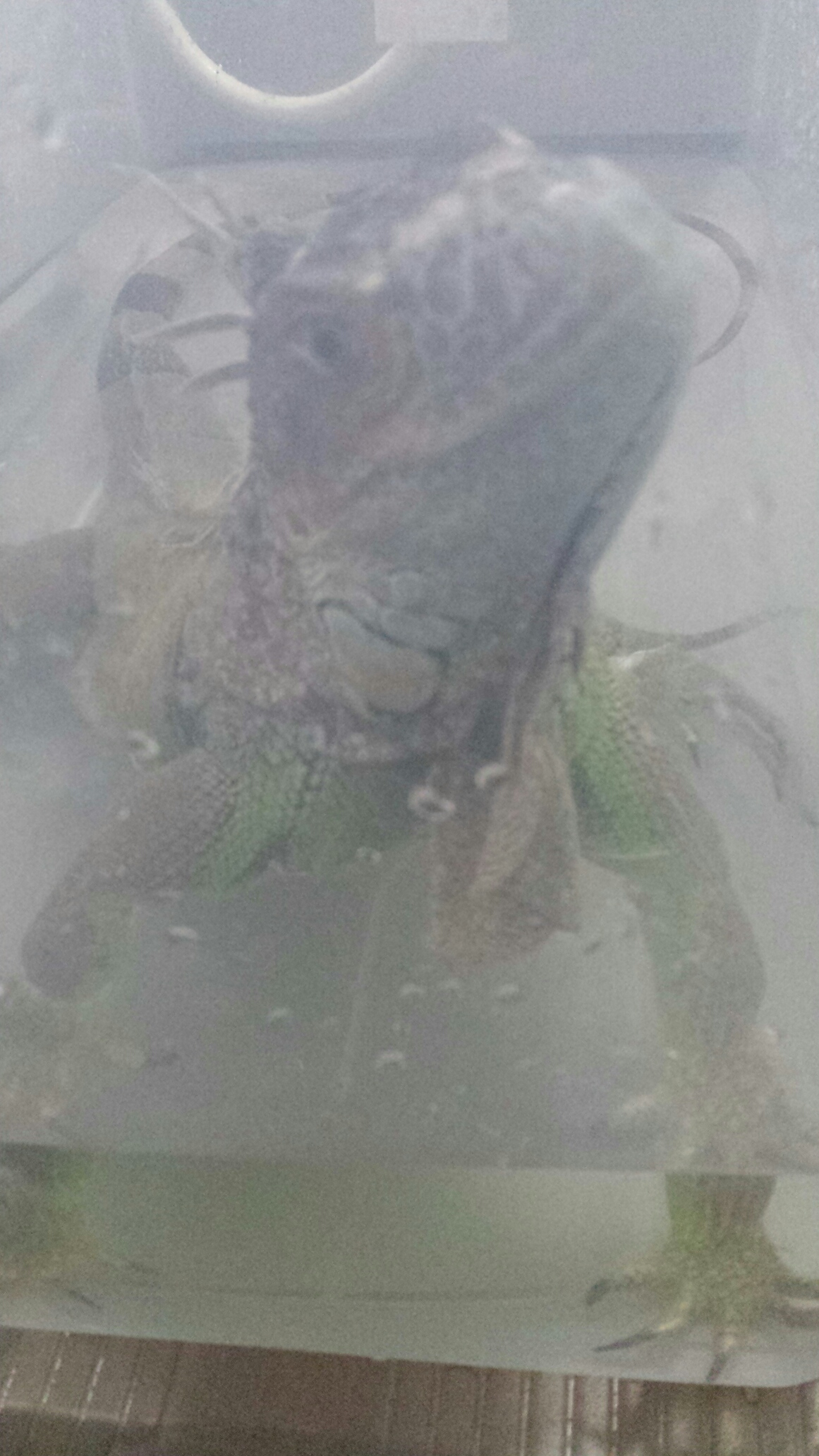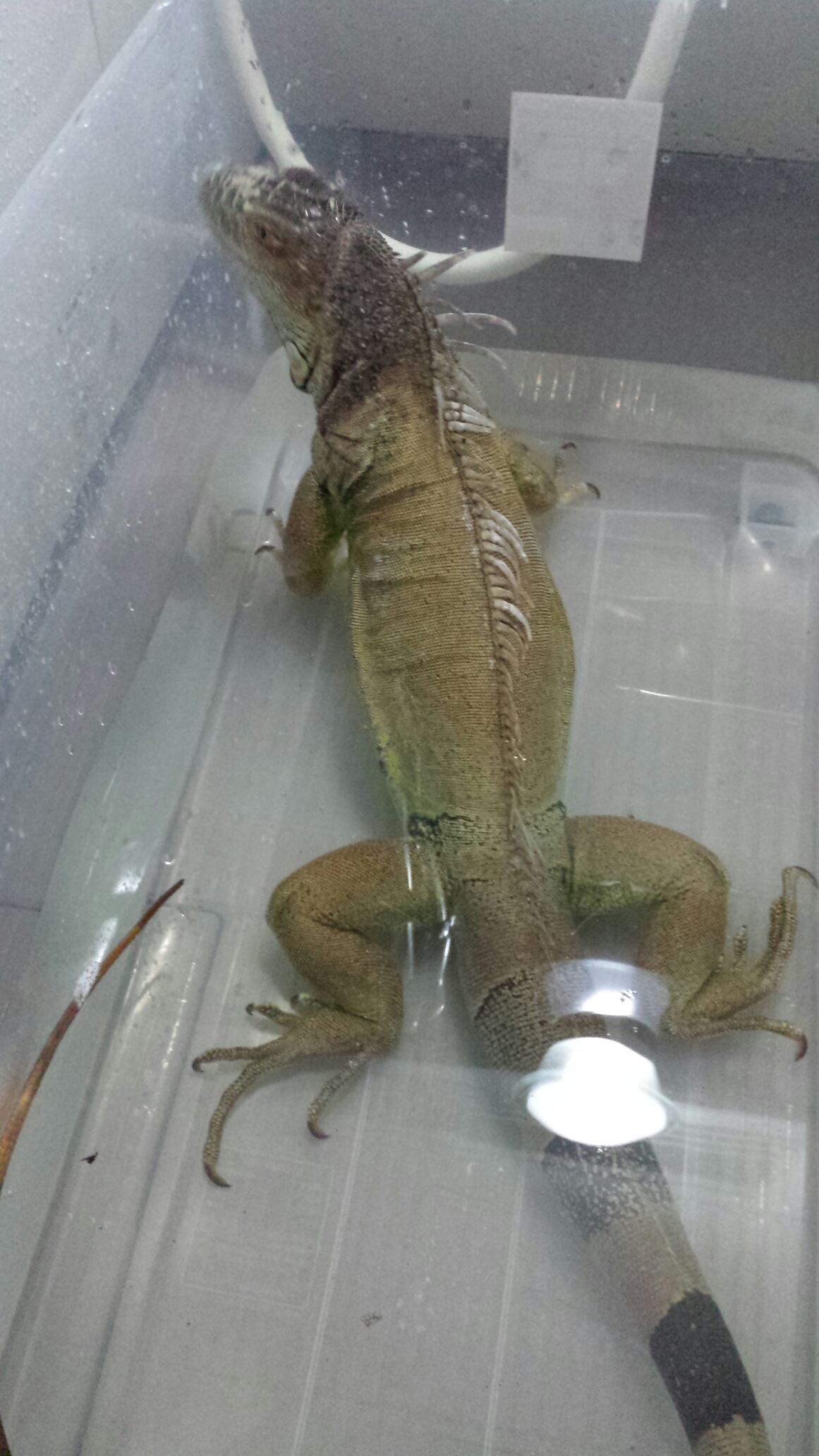 泳ごうとするが、狭くて端っこにガンガンぶつかってます。
