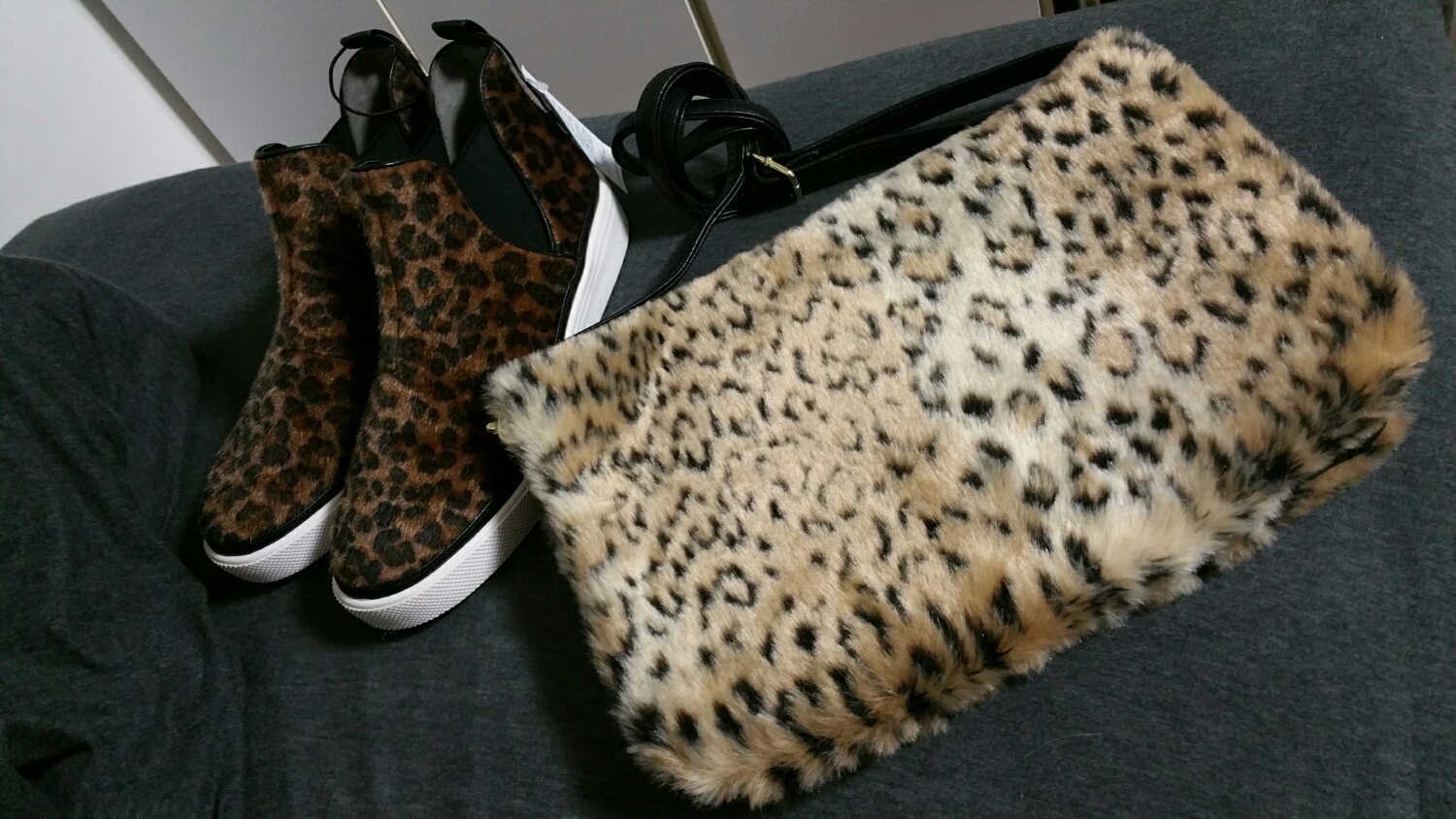 ヒョウ柄のリュックと携帯ケースを持ってたら、