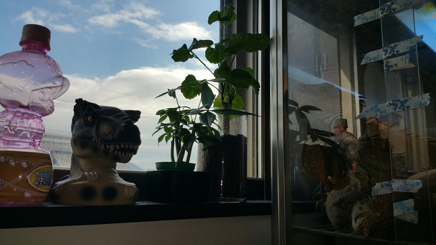 窓際に置いてあったものがすべてなぎ倒されてた。
